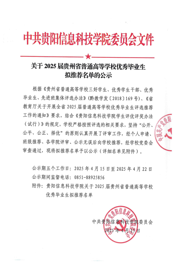 中共yabo鸭脖官网委员会关于2025届省级优秀毕业生拟推荐名单的公示