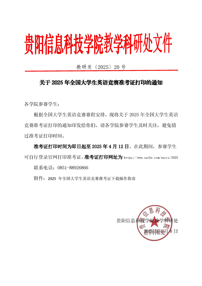 关于2025年全国大学生英语竞赛准考证打印的通知