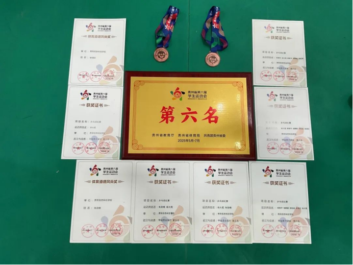 在7月18日圆满落幕的贵州省第六届学生运动会乒乓球比赛中,鸭脖乒乓球队员不负众望、奋勇拼搏,最终摘得男子单打第三名、混合双打第五名、男子团体第六名的亮眼成绩,用汗水与拼搏为学校赢得了荣誉。