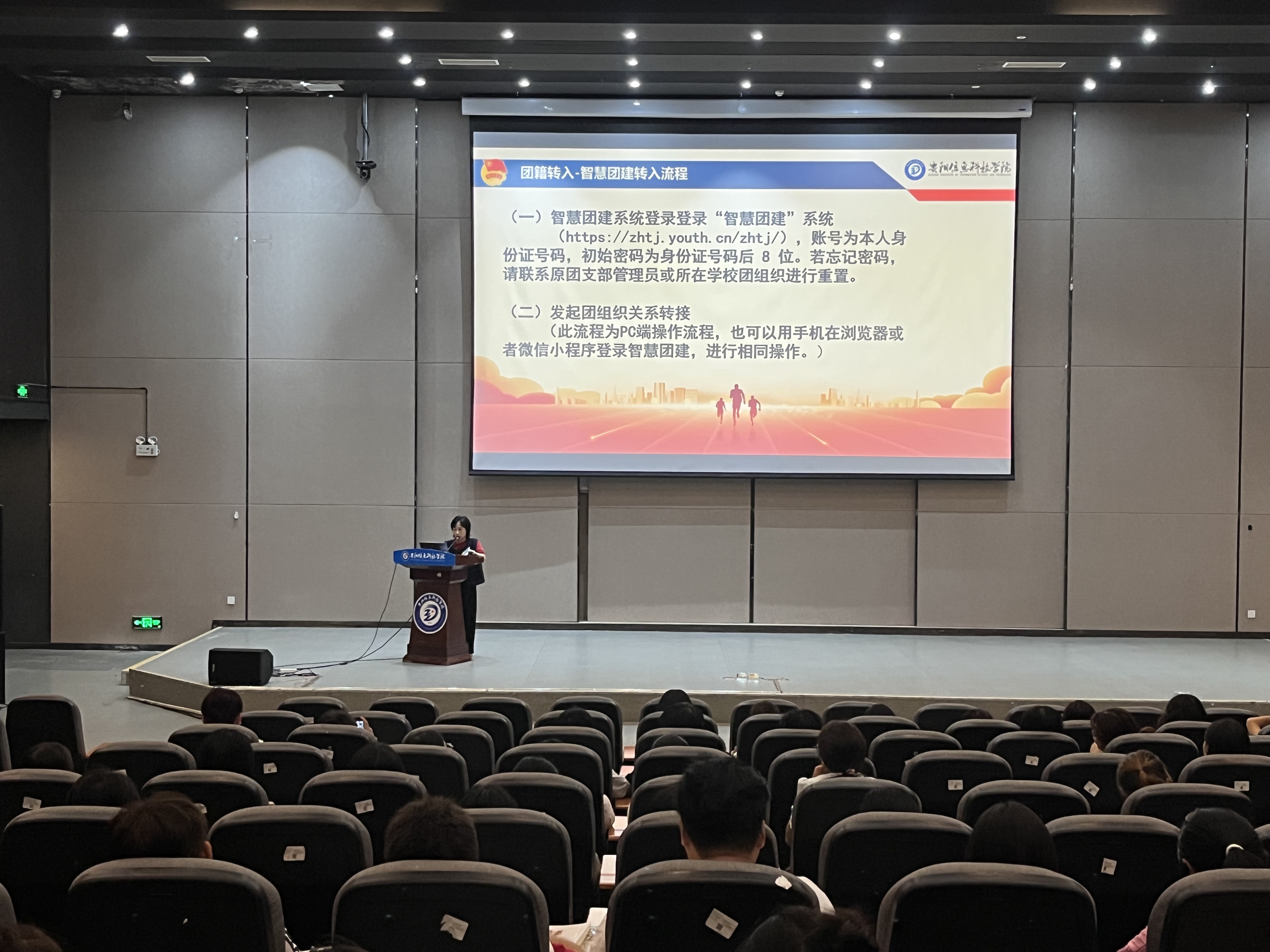 团学组织是大学活力的源泉,积极参与则是成长的重要途径。团学工作处颜欣老师在团学相关手册讲解中,从团学组织架构、活动申报流程、团员培养体系,到具体的能力提升路径,为新生们明确了参与团学工作的“方向”与“价值”。她详细解读了校团委、院团总支及各类社团的职能定位,帮助新生找到适合自己的参与切入点;同时结合优秀学长学姐的实践案例,生动阐述了参与团学活动对提升沟通协调、活动策划、责任担当等核心素养的重要作用,让新生们清晰认识到,可借助团学平台实现兴趣培养与能力提升的双重目标。