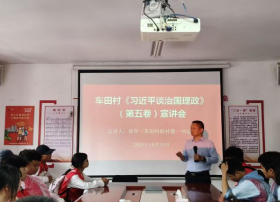 活动伊始,宣讲会以“《习近平谈治国理政》(第五卷)”的核心要义与实践要求为主。宣讲中,车田村党支部书记张忠平、驻村第一书记徐军结合教育教学、乡村治理的实际案例,解读书中蕴含的马克思主义立场观点方法,引导在场师生将理论学习与日常工作、生活紧密结合,切实把学习成果转化为干事创业的动力。