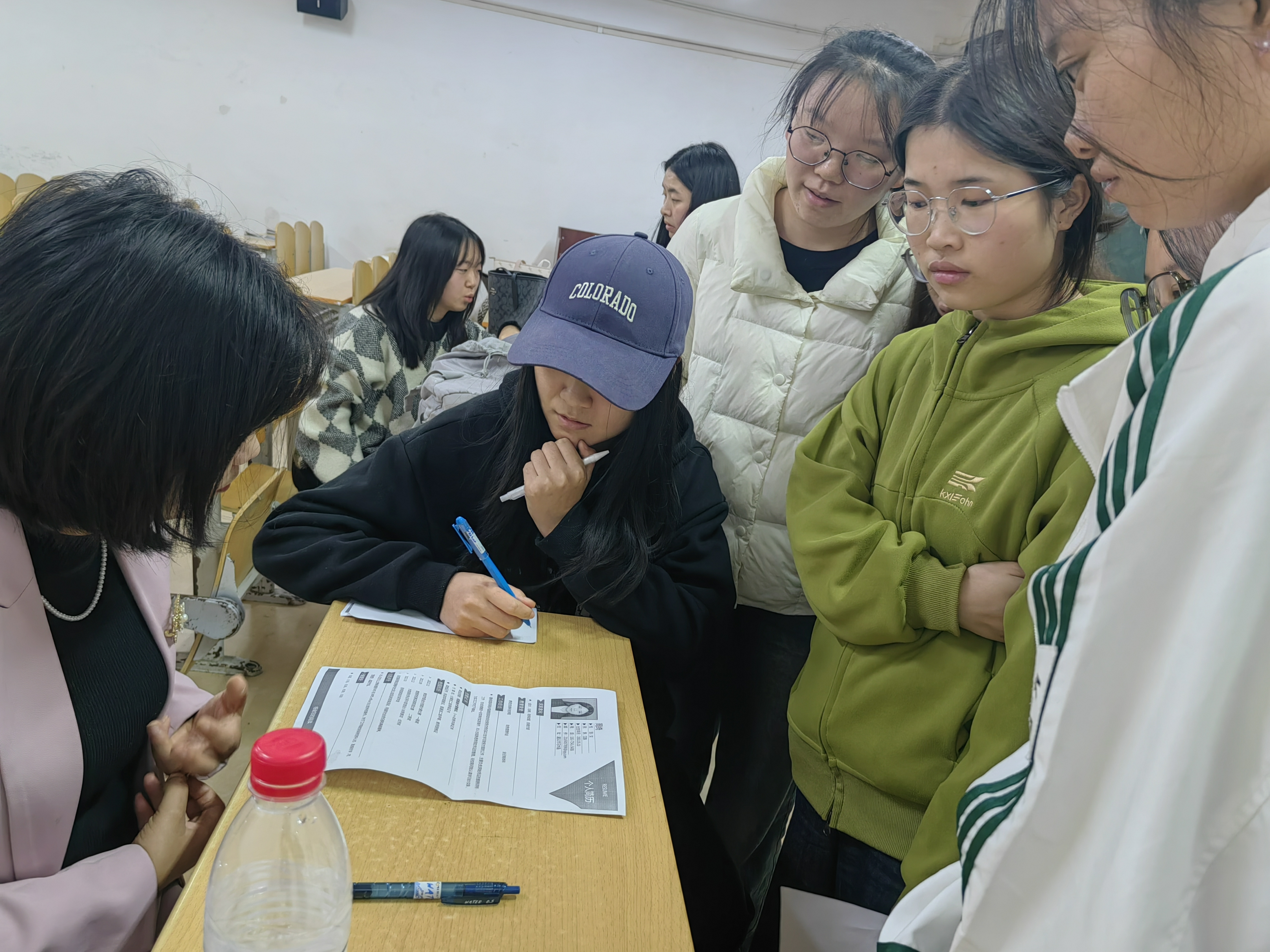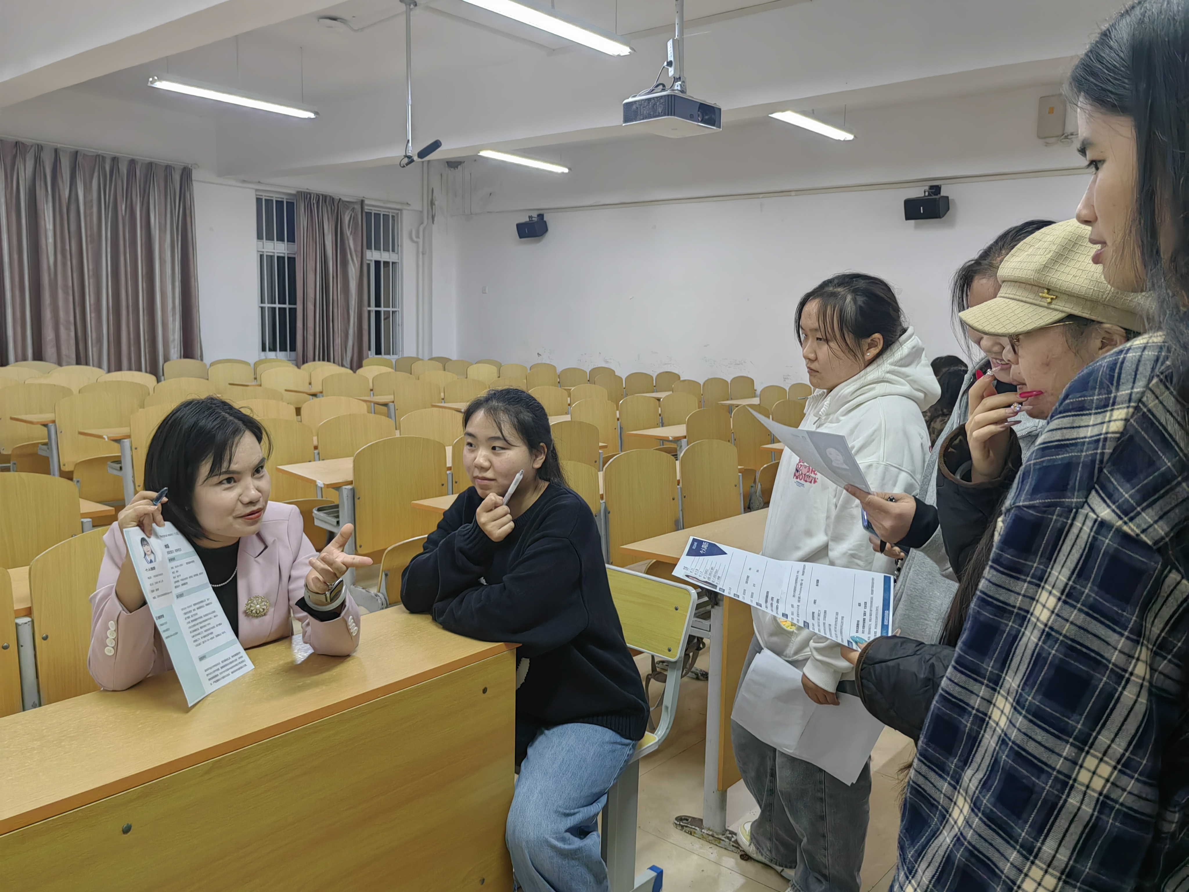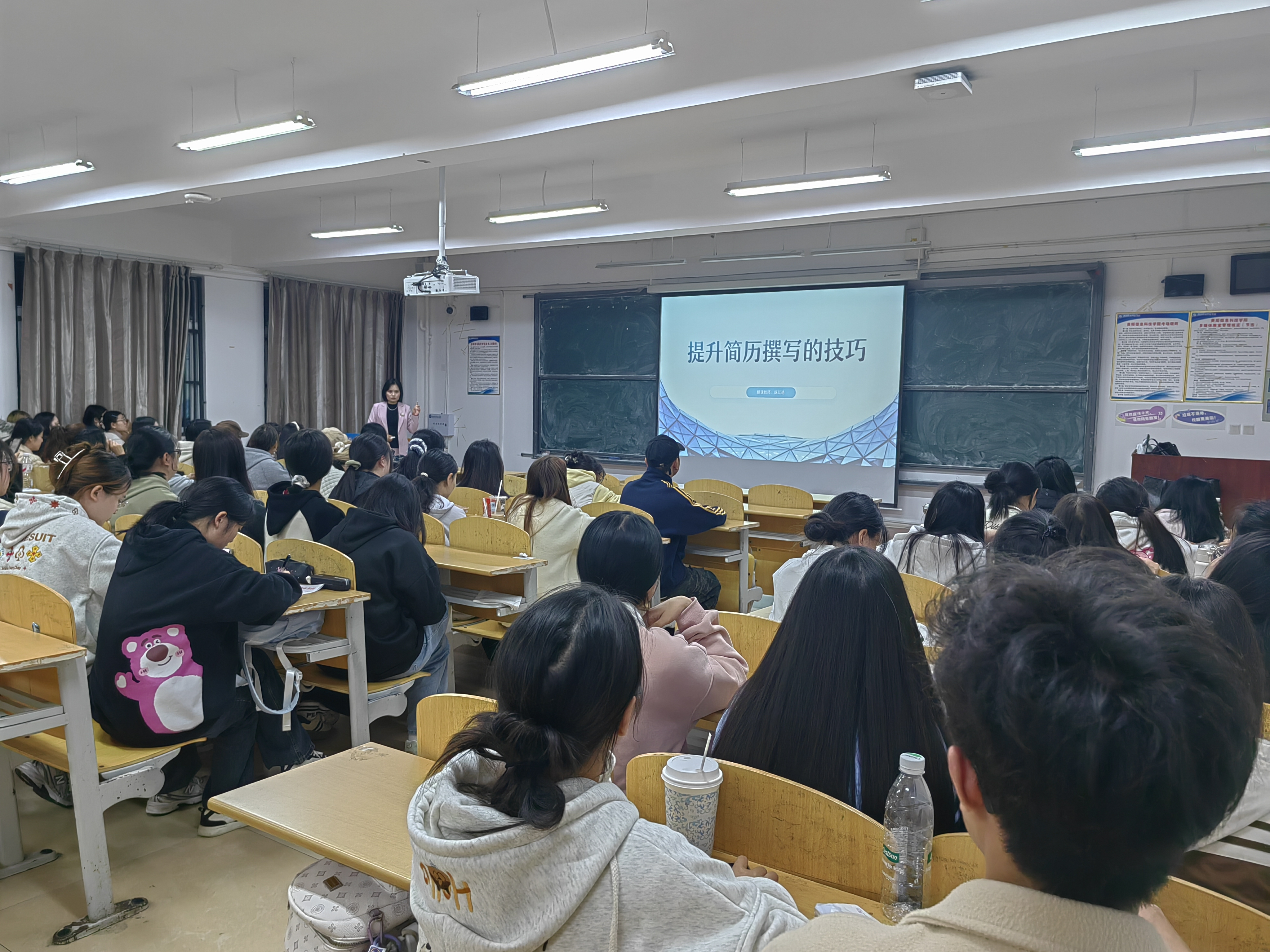 陈江艳老师凭借多年企业实战经验,围绕简历内容撰写、结构优化以及亮点呈现等方面展开了系统阐述。她借助生动的企业案例,以风趣的语言风格,将实用技巧徐徐道来,现场不时传出笑声与掌声,同学们于轻松氛围中掌握了简历撰写的核心要点。课程结束后,同学们热情依旧高涨,纷纷携带个人简历积极参与“一对一诊断”环节。陈老师耐心细致地对每份简历进行分析指导,针对不同专业背景与求职意向,提出个性化修改建议,助力同学们凸显优势、增强求职竞争力。