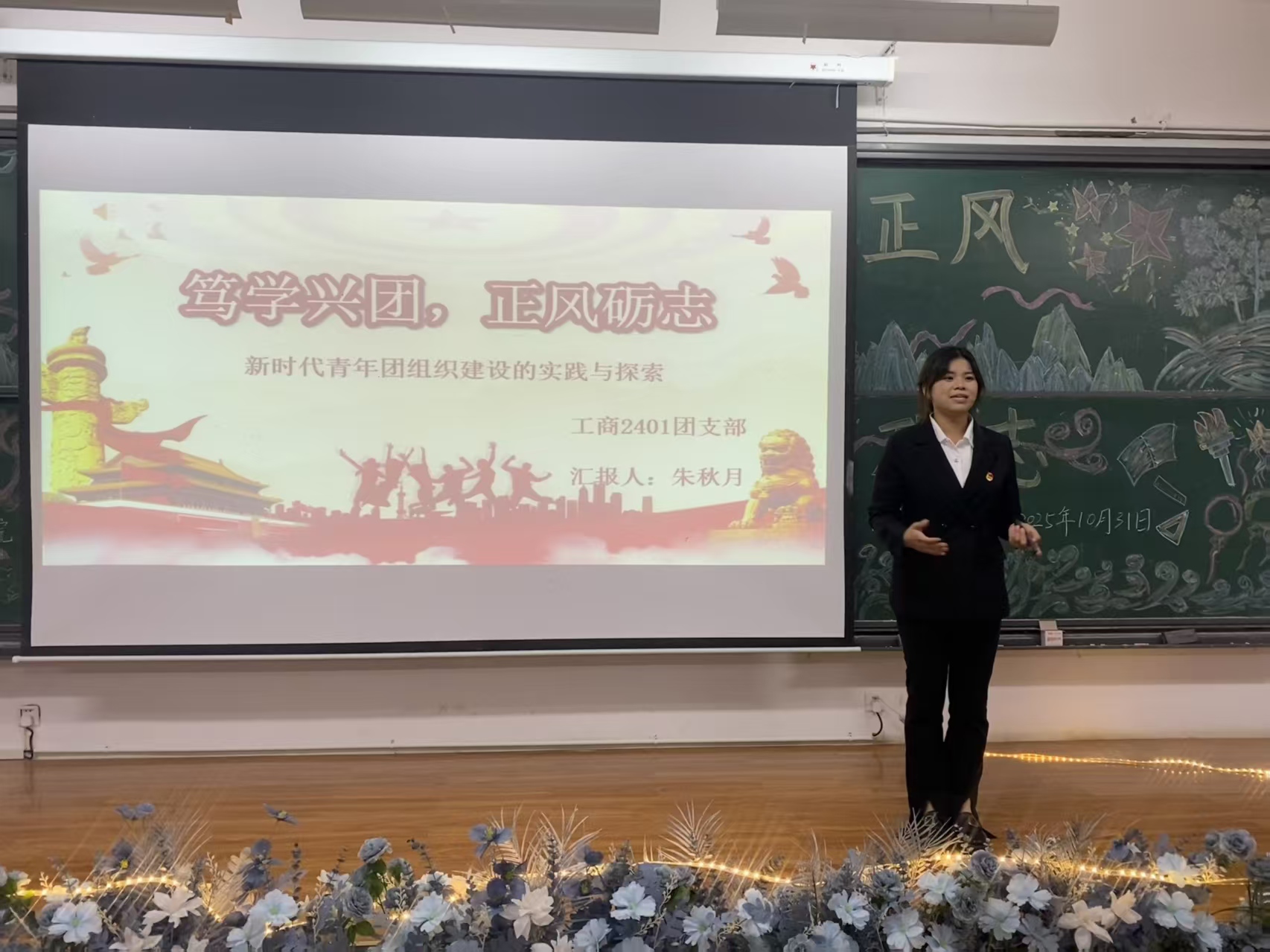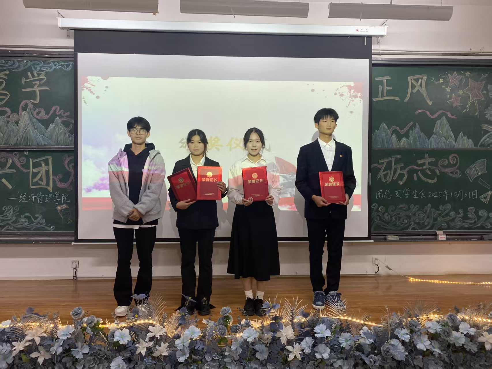 新闻网讯(供稿 石梦花 供图 王梦竹)为凝聚青年奋进力量,筑牢组织建设根基,激励担当作为,经济管理学院于2025年10月31日在B409教室隆重举行“笃学以明志,正风以兴团”主题团组织生活评比。活动通过评比促提升,充分展现了各团支部笃学实干、朝气蓬勃的新风貌。