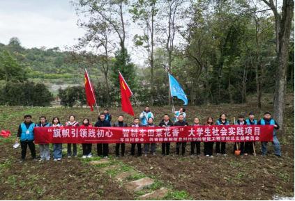 活动当天,在学院党总支书记卓莉、院长廖益龙、团总支书记马瑞及王永鹏老师的带领下,10余名学生代表与车田村党支部书记、驻村第一书记徐军等村干部共同举旗,宣示“以智助农、以行践学”的实践目标,拉开社会实践活动的序幕。