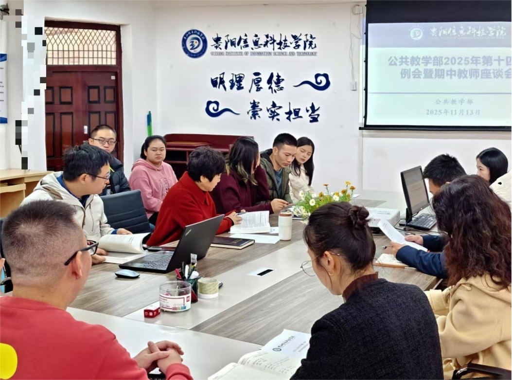 2025年11月13日12:30,公共教学部2025年第十四次例会暨期中教师座谈会在A栋211会议室召开。会议由唐丽华部长主持,学校副书记詹凯、实践实训中心主任江林焱出席,公共教学部全体教师参会。
