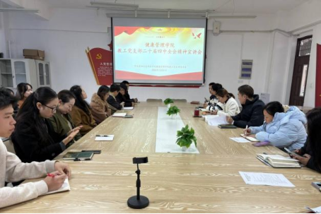为深入学习贯彻党的二十届四中全会精神,深刻领会党中央决策部署,进一步增强党员的政治自觉和思想自觉,准确把握“十五五”时期国家发展的战略方向和重点任务,2025年11月20日,中共yabo鸭脖官网健康管理学院组织全体师生党员召开“学习贯彻二十届四中全会精神”专题宣讲会,集中学习全会精神,凝聚思想共识,激发奋进力量。