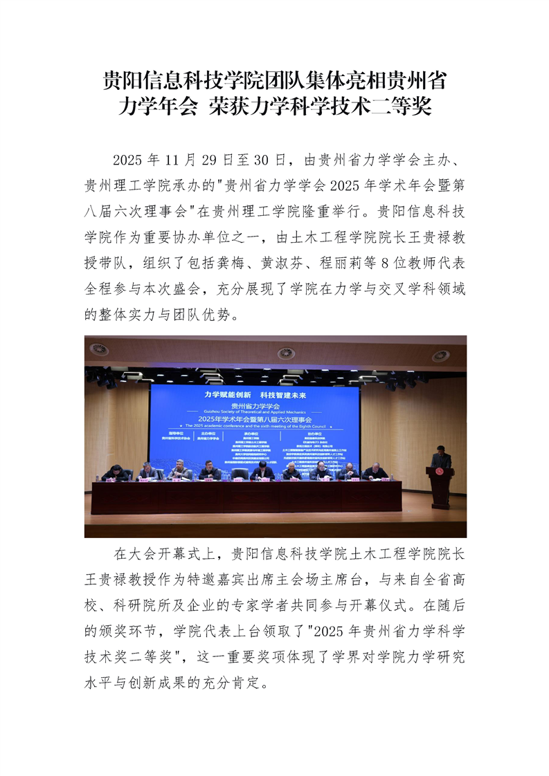 yabo鸭脖官网团队集体亮相贵州省 力学年会 荣获力学科学技术二等奖