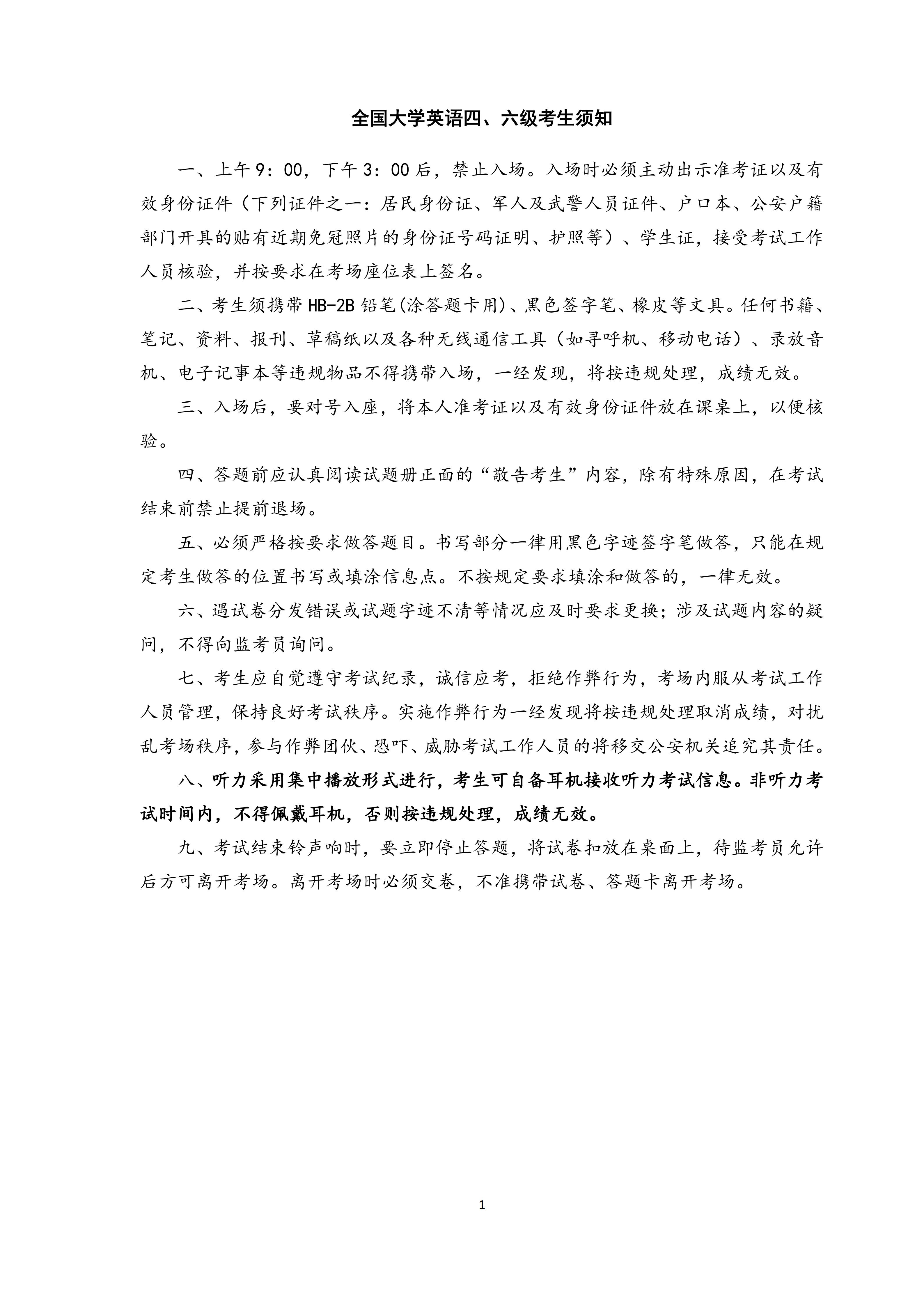 全国大学英语四、六级考生须知