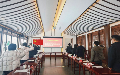随后,全体党员在学院办公室主任付豪同志带领下,庄严举起右拳,重温入党誓词。铿锵有力的誓言回荡在书院之中,进一步强化了党员的身份意识与初心使命。