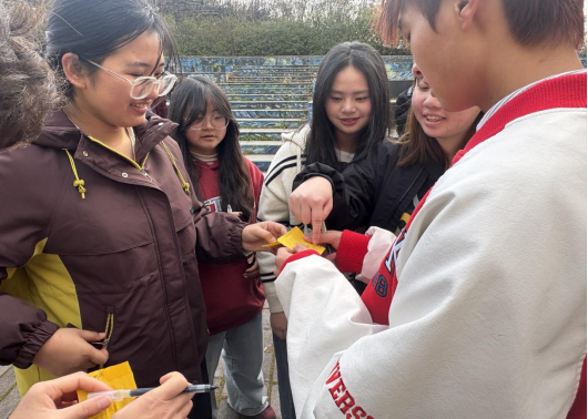 最触动人心的是“焦虑回应接力”环节。当所有气球被依次戳破,承载着焦虑的纸条散落出来,同学们纷纷捡起陌生同学的纸条,认真写下温暖的鼓励与切实的建议。“别担心期末考试,按节奏复习就好”“人际关系需要慢慢经营,真诚最重要”……一句句暖心的回应,让原本沉重的焦虑变得轻盈,也让同学们感受到了来自同龄人的理解与支持。