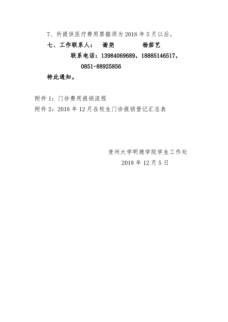 贵州大学明德学院在校大学生基本医疗保险门诊医疗费报销管理办法 (试行)