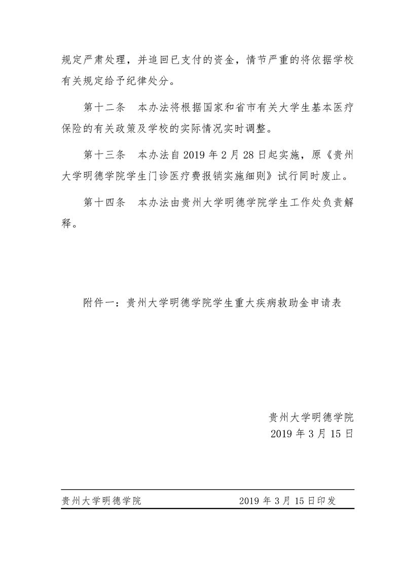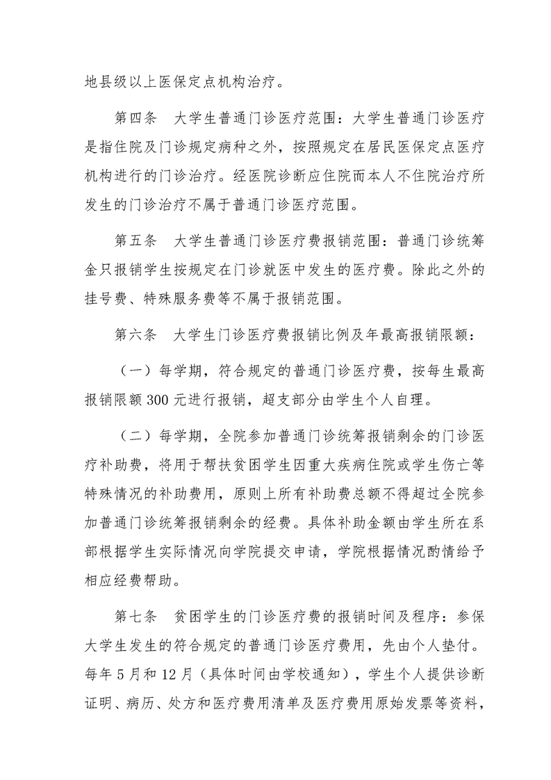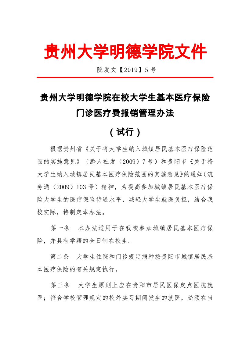贵州大学明德学院在校大学生基本医疗保险门诊医疗费报销管理办法 (试行)