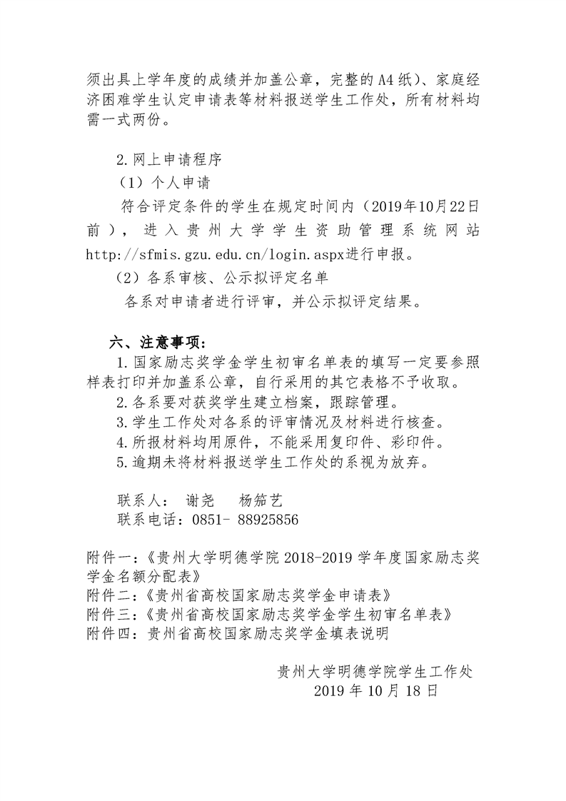 贵州大学明德学院关于2018-2019学年度国家励志奖学金评选工作的通知