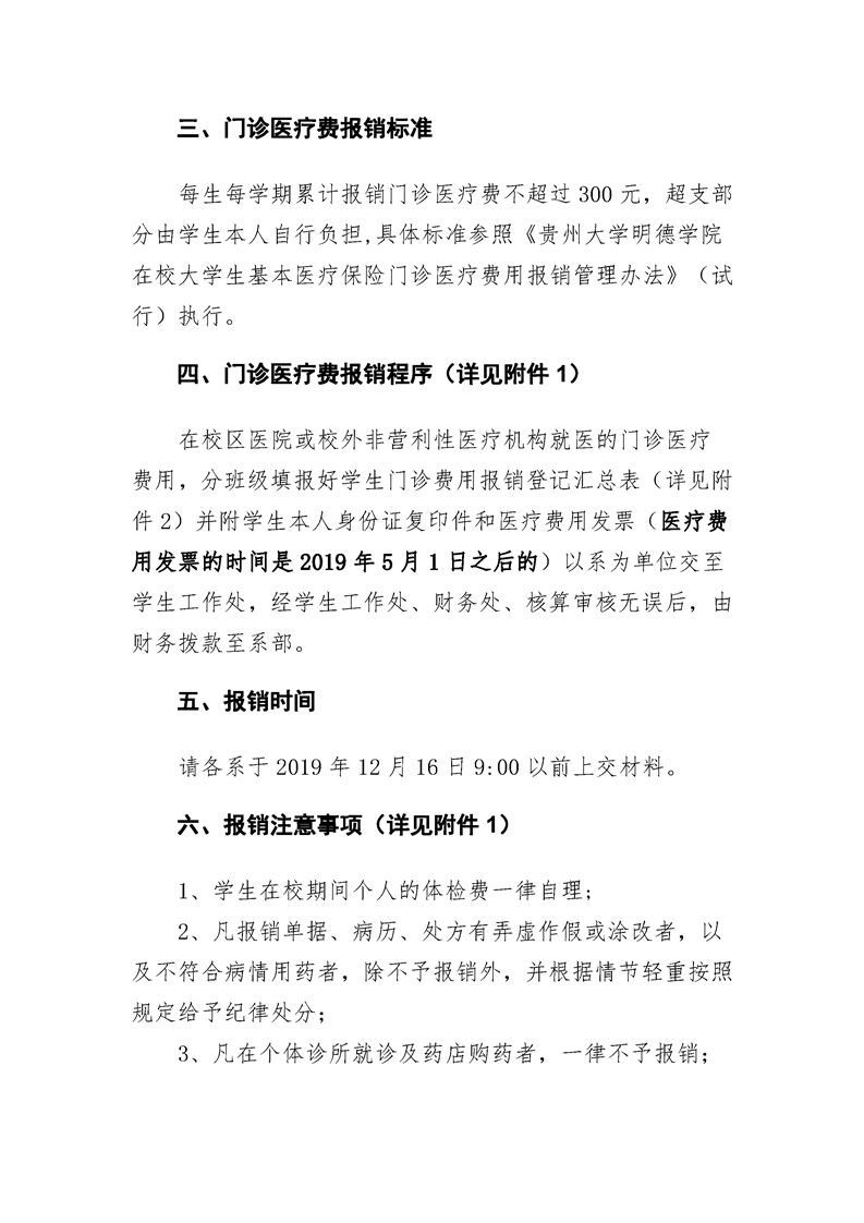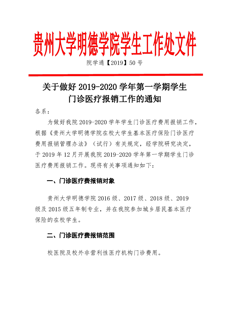 关于做好2019-2020学年第一学期学生门诊医疗报销工作的通知