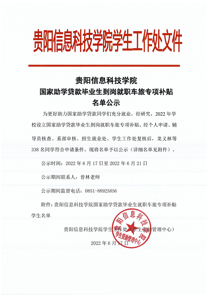 yabo鸭脖官网国家助学贷款毕业生到岗就职车旅专项补贴名单公示