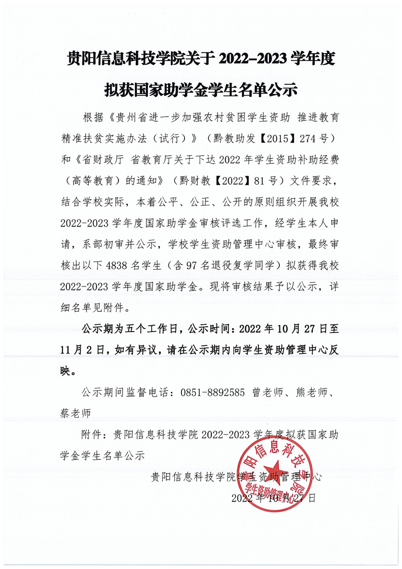 yabo鸭脖官网关于2022-2023学年拟获国家助学金学生名单公示
