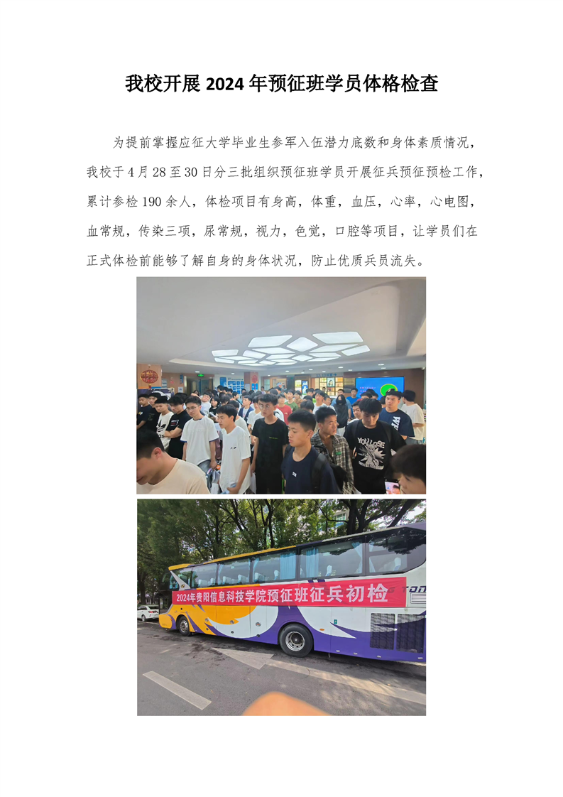 鸭脖开展2024年预征班学员体格检查