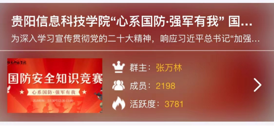 为深入学习宣传贯彻党的二十大精神,响应习近平总书记“加强全民国防教育,巩固军政军民团结,为实现中国梦强军梦凝聚强大力量”的号召,进一步加强青年学生的国防观念和忧患意识,让国防教育全方位融入、征兵工作常态化推进,营造崇军尚武的校园氛围,丰富学生课余生活,鸭脖将面向全体在校生举办国防安全知识竞赛及素质拓展活动。