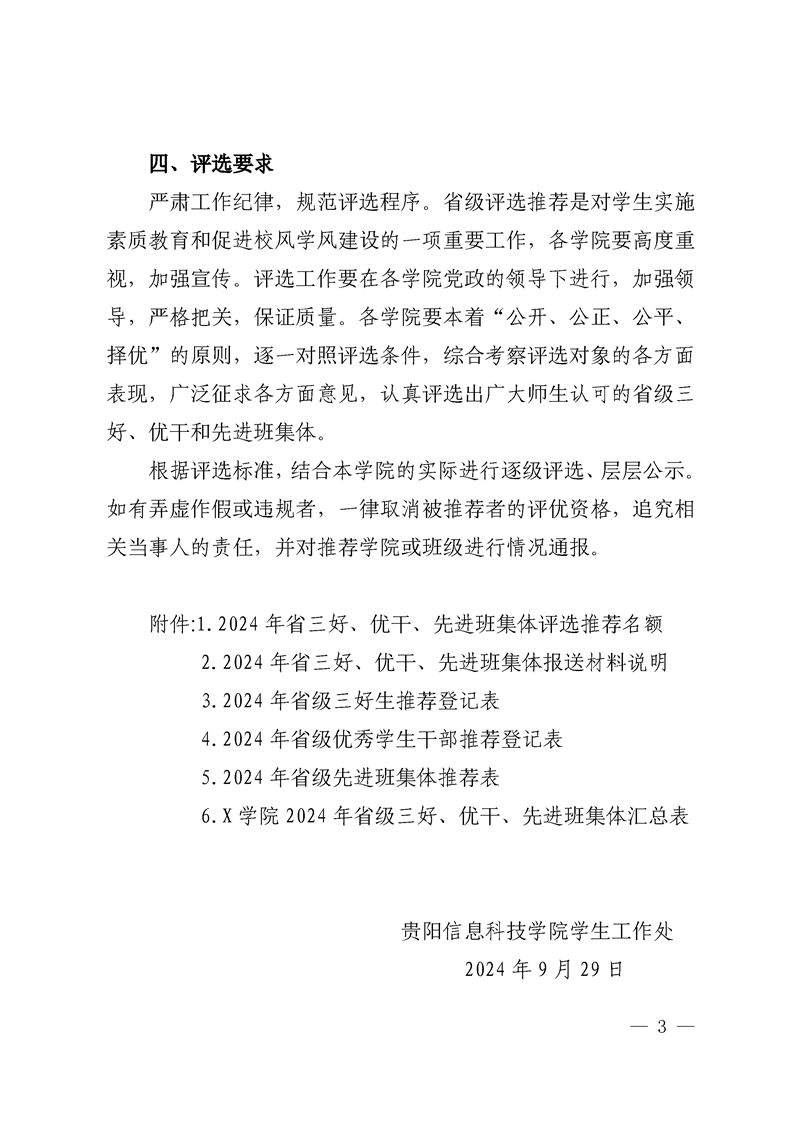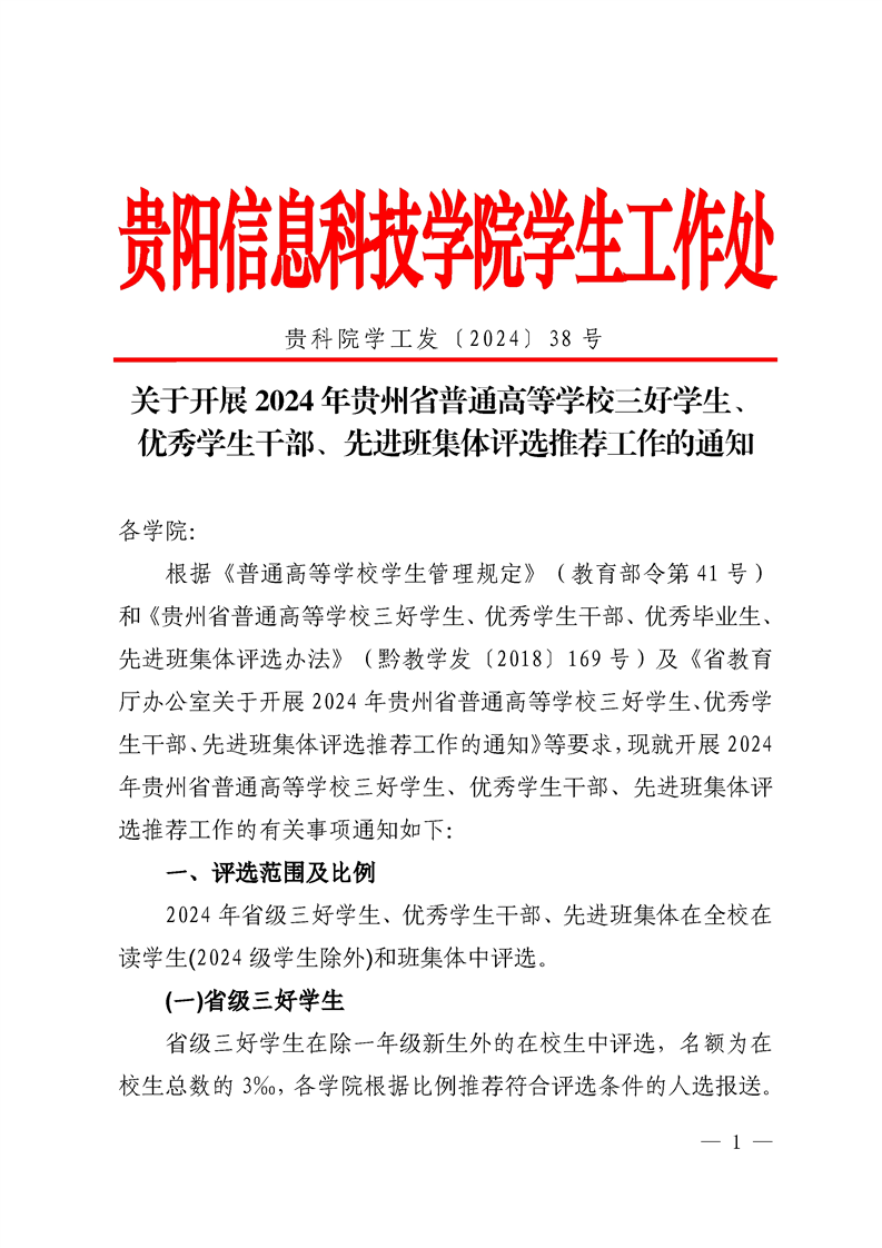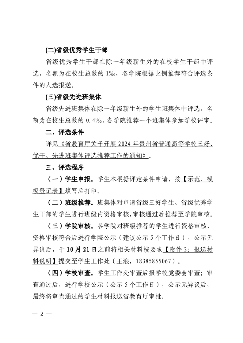 关于开展2024年贵州省普通高等学校三好学生、优秀学生干部、先进班集体评选推荐工作的通知