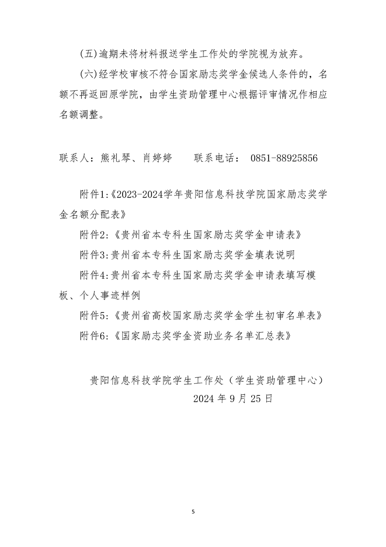 贵科院学工发〔2024〕36号 关于做好2023-2024学年度国家励志奖学金评选推荐工作的通知