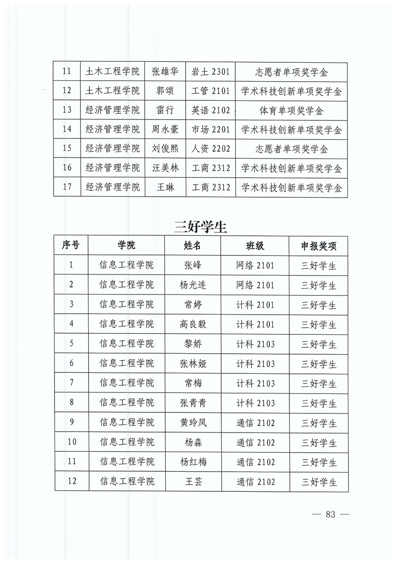 yabo鸭脖官网关于2023-2024学年优秀学生奖学金、三好、优干等评审名单的公示