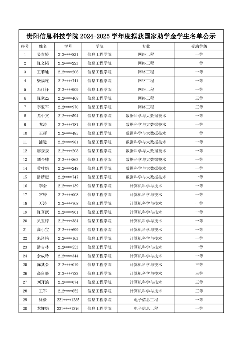 关于做好2024-2025学年秋季学期国家助学金及贵州省巩固拓展脱贫攻坚成果专项助学金发放前核对工作的通知