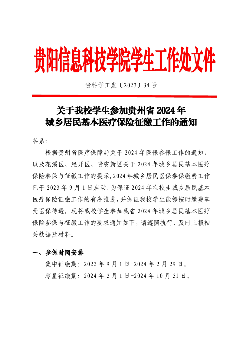 关于鸭脖学生参加贵州省2024年城乡居民基本医疗保险征缴工作的通知