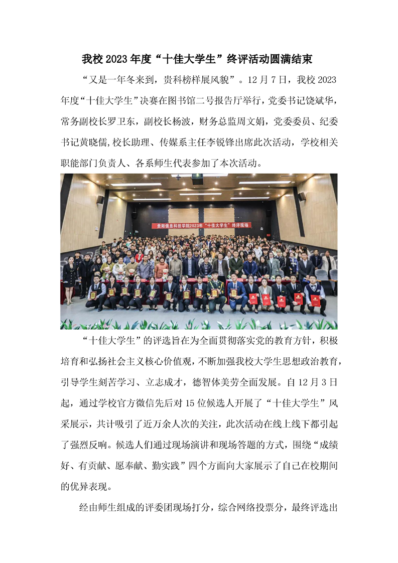 关于评选yabo鸭脖官网2023年“十佳大学生”的通知