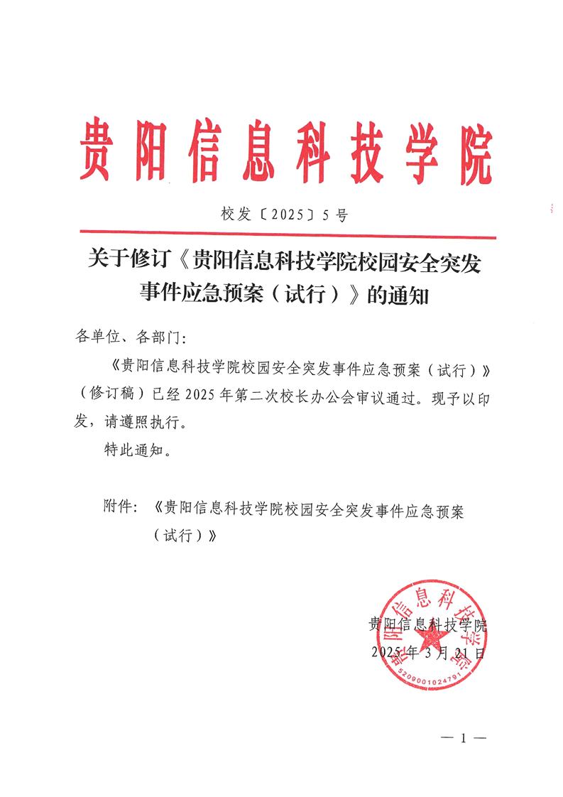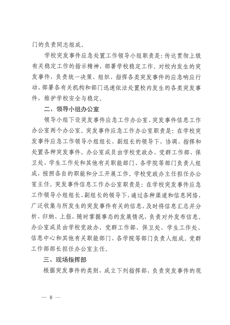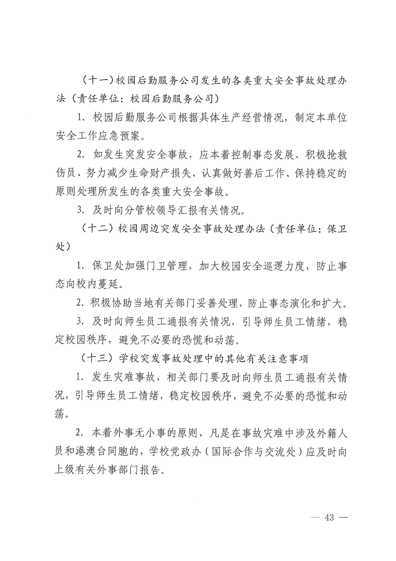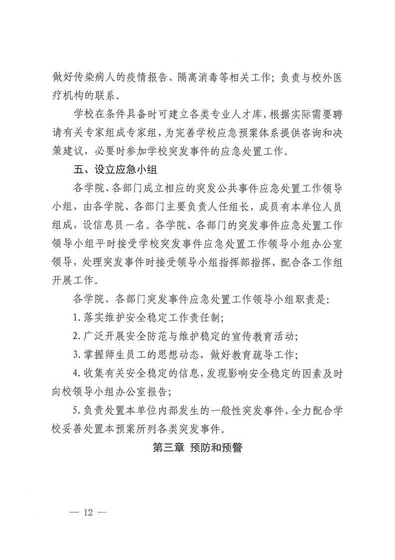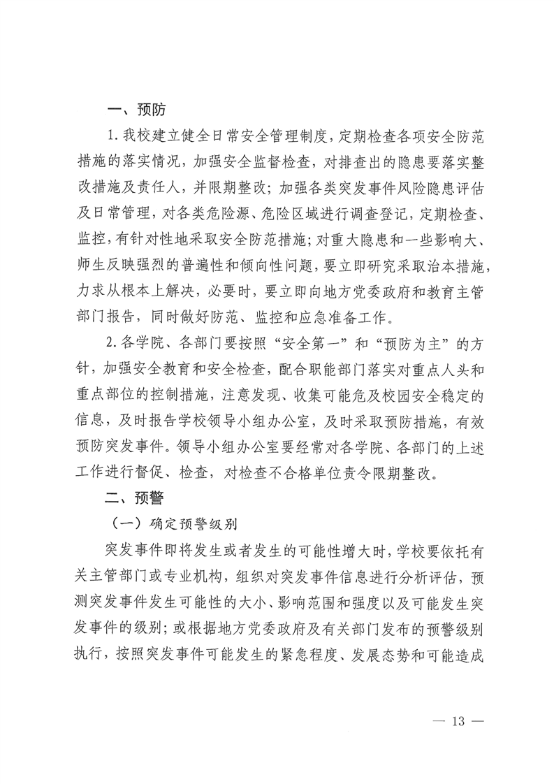 关于修订《yabo鸭脖官网校园安全突发事件应急预案(试行)》的通知