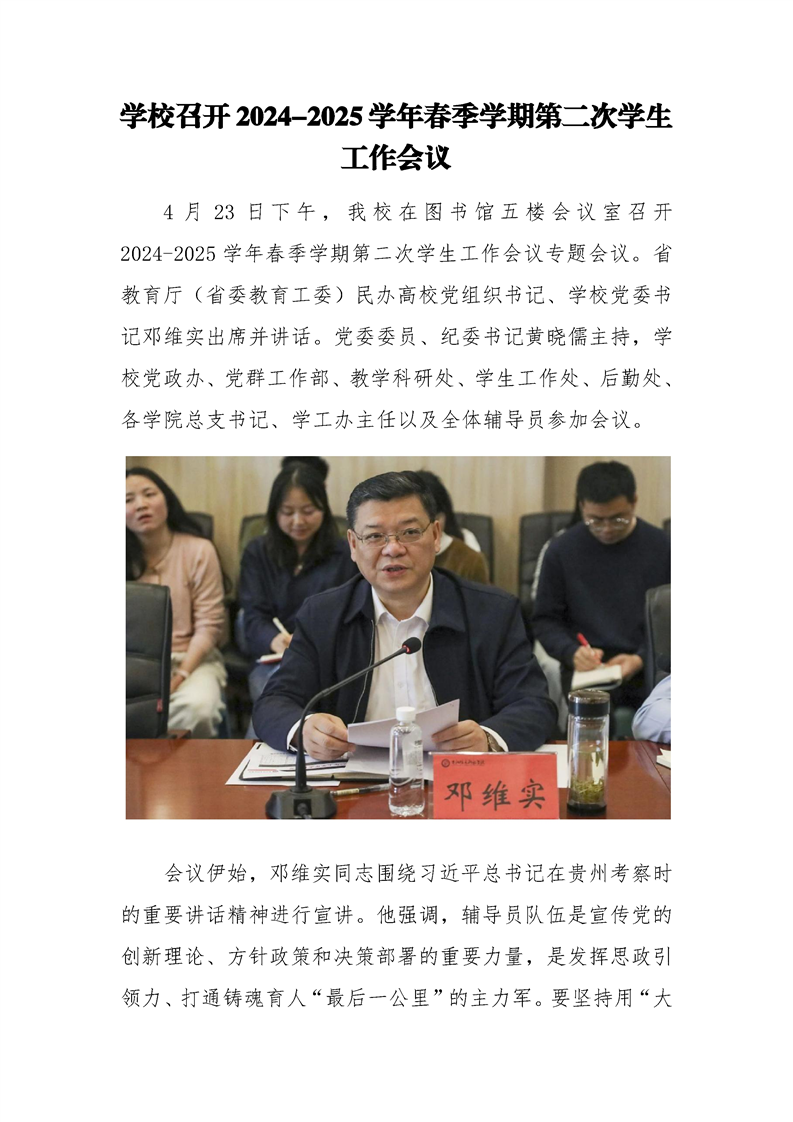 学校召开2024-2025学年春季学期第二次学生工作会议