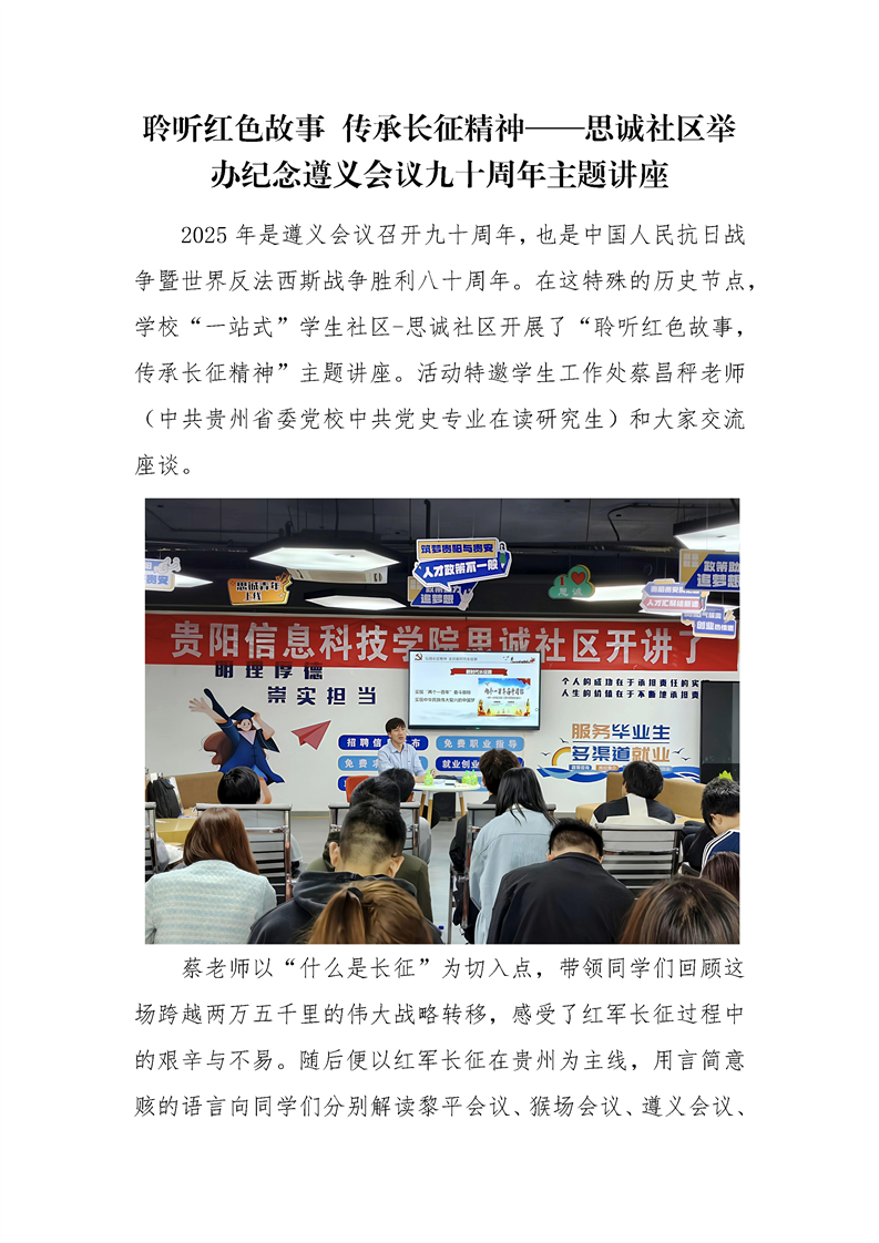 聆听红色故事 传承长征精神——思诚社区举办纪念遵义会议九十周年主题讲座