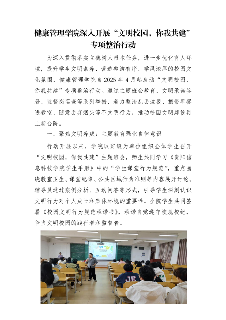 健康管理学院深入开展“文明校园,你我共建”专项整治行动