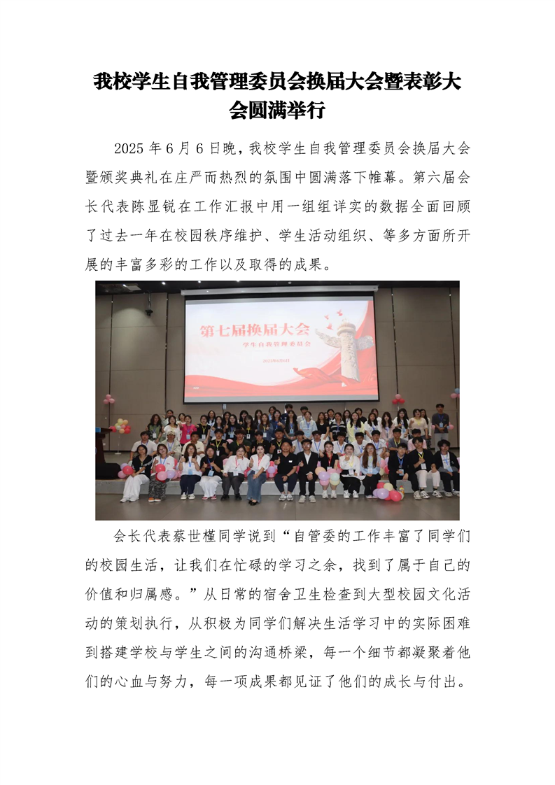 鸭脖学生自我管理委员会换届大会暨表彰大会圆满举行