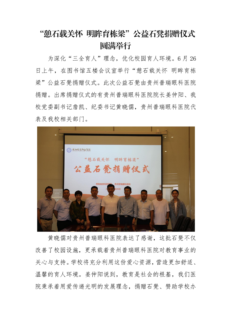 “憩石载关怀 明眸育栋梁”公益石凳捐赠仪式圆满举行