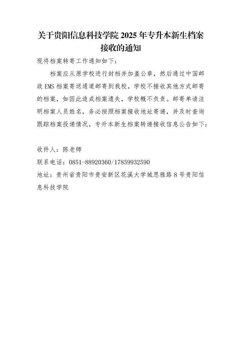 关于yabo鸭脖官网2025年专升本新生档案接收的通知