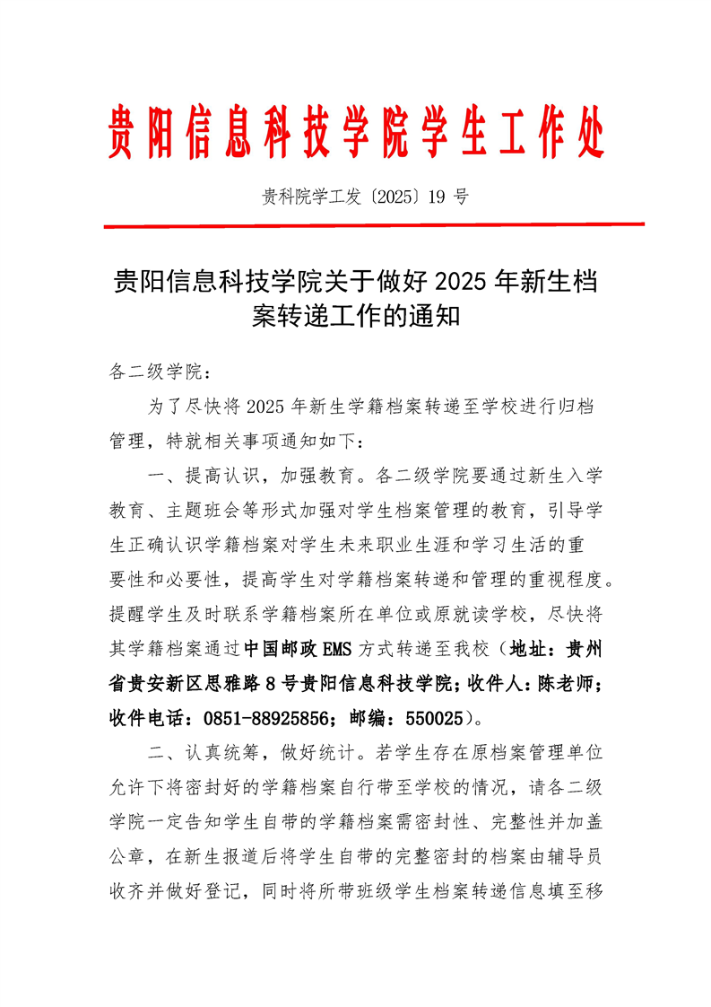 yabo鸭脖官网关于做好2025年新生档案转递工作的通知