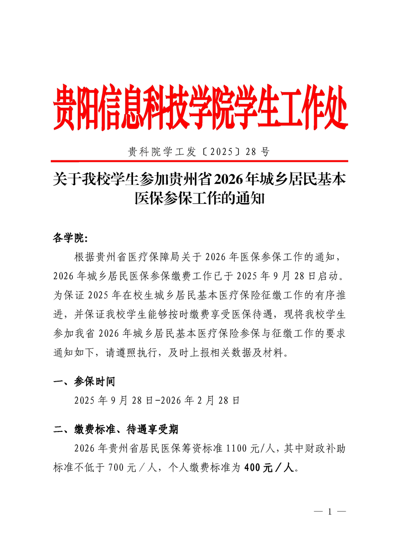 关于鸭脖学生参加贵州省2026年城乡居民基本医保参保工作的通知
