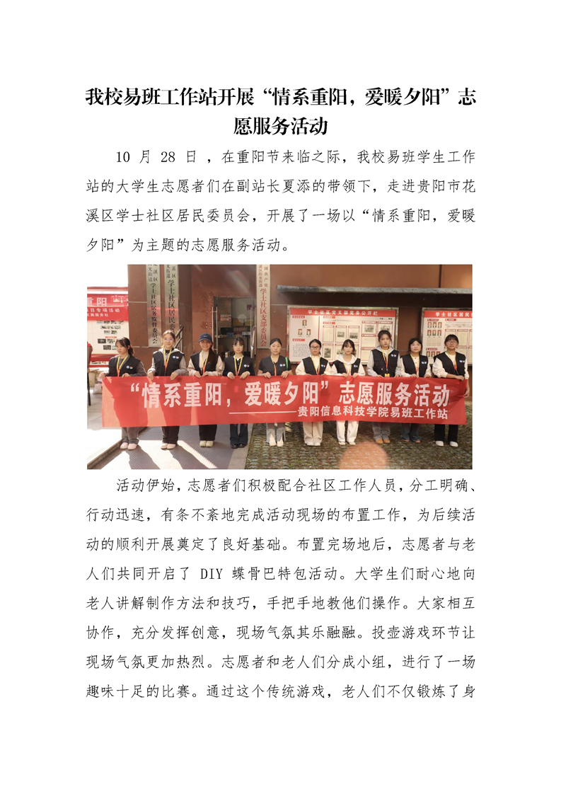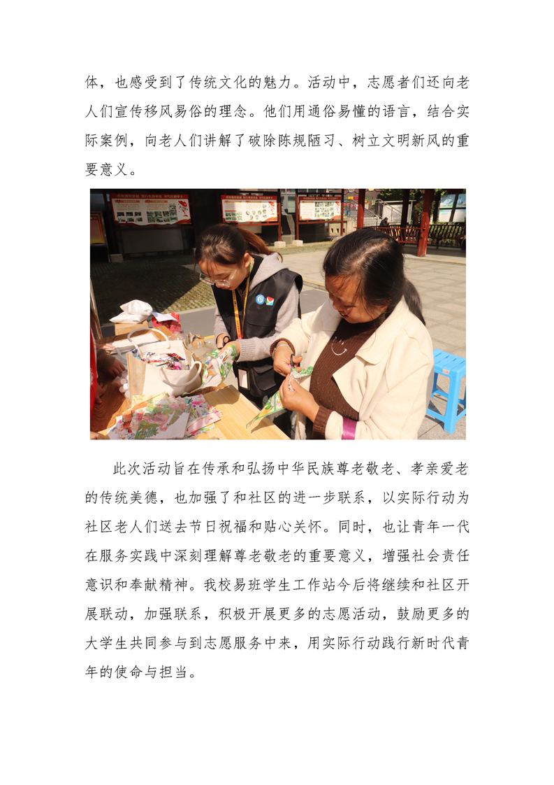 鸭脖易班工作站开展“情系重阳,爱暖夕阳”志愿服务活动