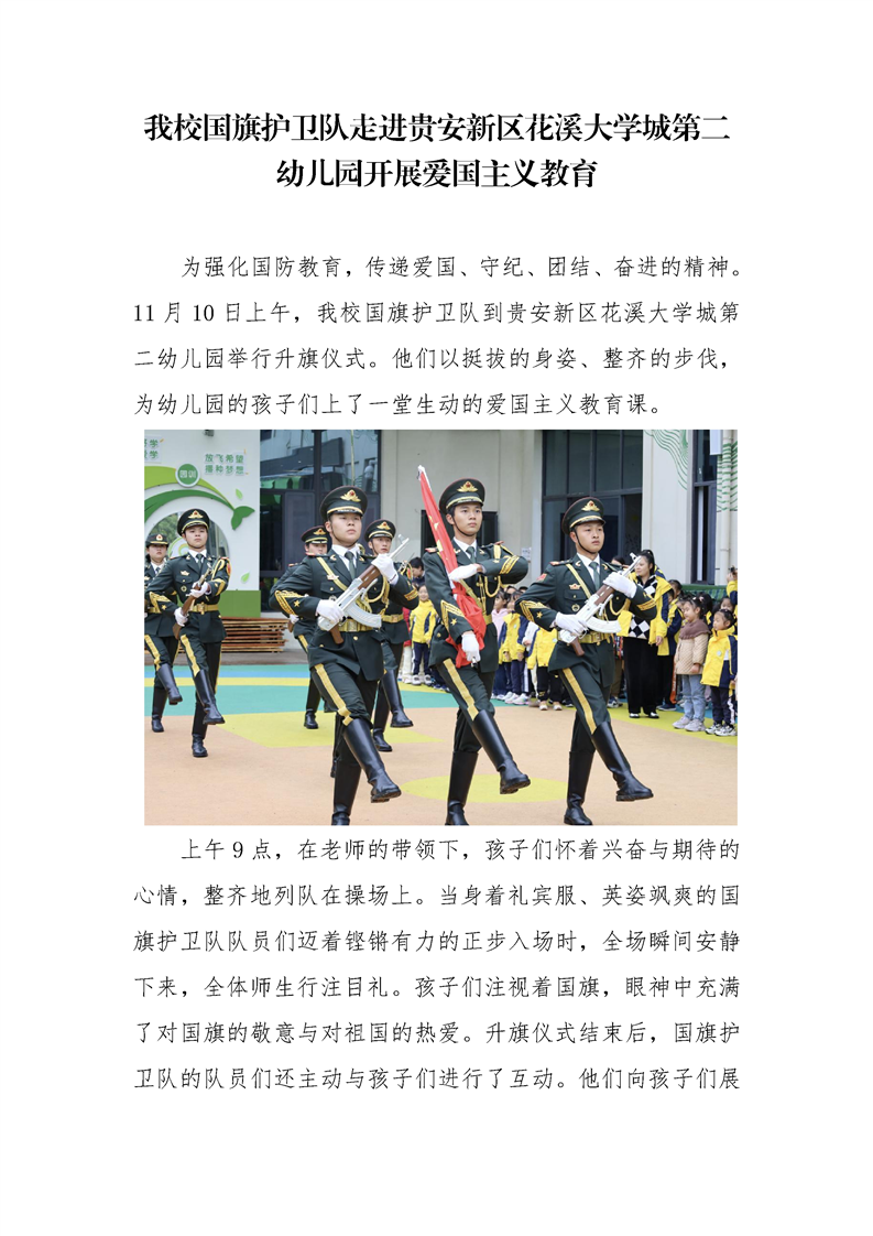 鸭脖国旗护卫队走进贵安新区花溪大学城第二幼儿园开展爱国主义教育