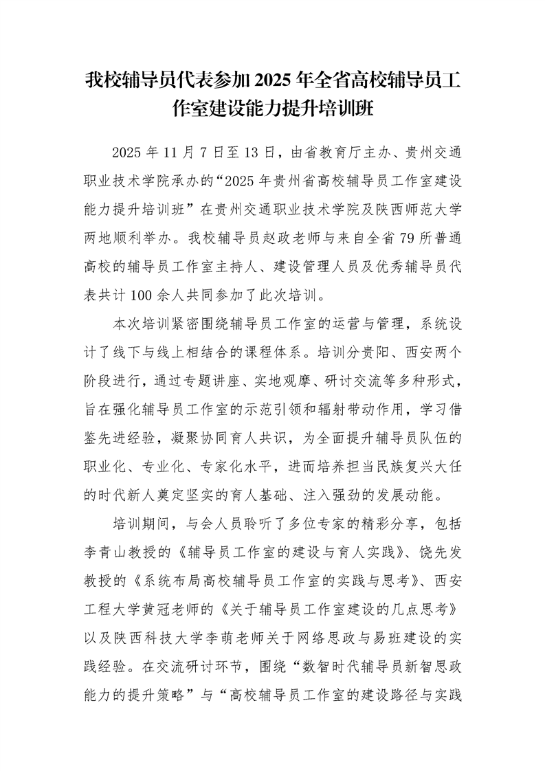 鸭脖辅导员代表参加2025年全省高校辅导员工作室建设能力提升培训班