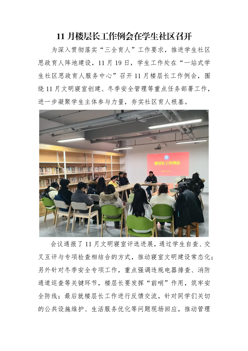 11月楼层长工作例会在学生社区召开