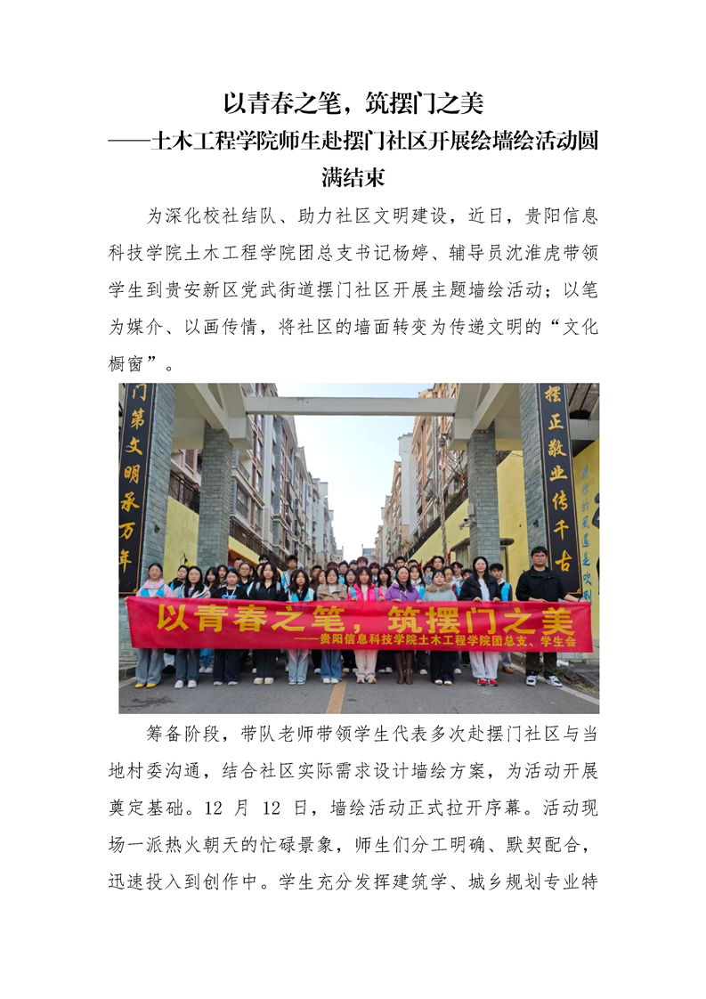 以青春之笔,筑摆门之美 ——土木工程学院师生赴摆门社区开展绘墙绘活动圆满结束