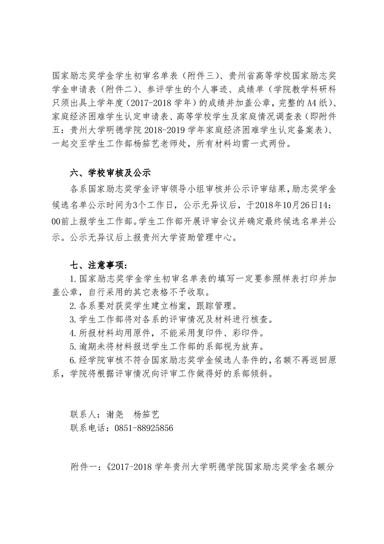 关于做好贵州大学明德学院2017-2018学年国家奖学金评选工作的通知